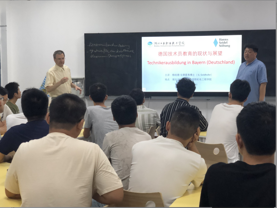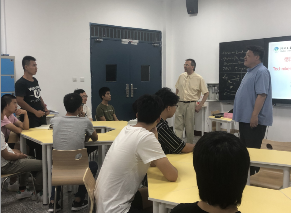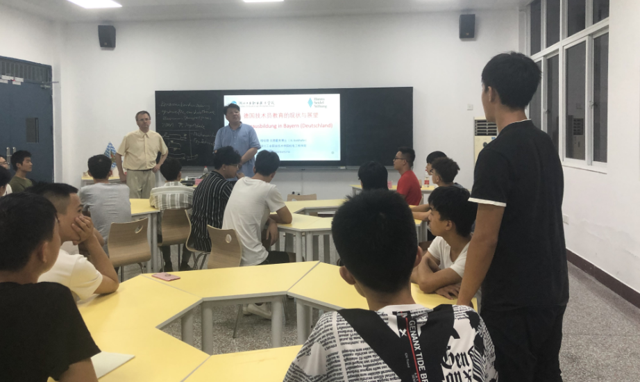 接下来,格哈德·戈德霍弗博士介绍了因戈施塔特技术员公司的教学体系和教学模式等情况,以及未来对公司的合作计划,中德技术员的同学们对自己未来与德国公司合作交流的可能性表示非常期待。