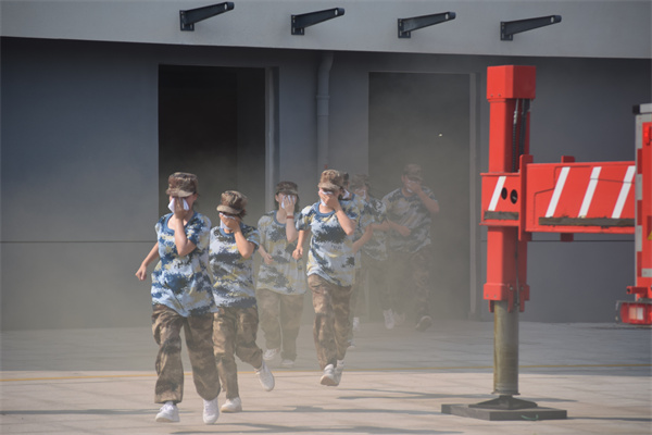 15点10分,嘉园5号员工公寓二楼“浓烟滚滚”,保卫处干部迅速启动消防声光、广播,切断电源,并组织楼层疏散引导员引导寝室内的员工用湿毛巾捂住口鼻,按照疏散要求,有序撤离到公司操场的安全区域,并迅速清点人数、汇总汇报。