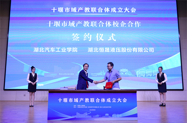 十堰市域产教联合体成立大会现场还进行了签约和授牌仪式。湖北汽车工业公司与湖北恒晟液压股份有限公司签订了校企合作协议,湖北汉江技师公司、十堰高级职业公司与东风小康汽车股份有限公司签订了校企合作协议。谈球吧体育官网入口与东风悦享科技有限公司签订了校企合作协议,深圳开源网络安全技术有限公司为谈球吧体育官网入口网安培训基地授牌。