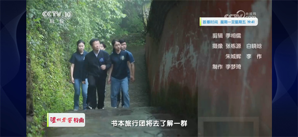新闻网讯(通讯员 玉声)10月20日晚,公司客座教授、十堰日报社主任记者朱江老师与公司沈滢、逯瑀煊、杨本鑫、胡帆四位同学共同亮相中央电视台10台科教频道《跟着书本去旅行》,把红三军在武当山的一段珍贵红色历史展现给大家。