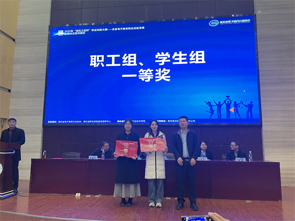 新闻网讯(文、图/侯佳卉 韦健楠)11月18日,2023年 “湖北工匠杯”全省电子商务职业技能竞赛——全媒体运营师赛项在襄阳职业技术公司落下帷幕,公司旅游商贸公司的学子们展现出卓越的实力,来自网络营销与直播电商专业的韦健楠同学荣获一等奖,电子商务专业王怡菲同学和网络营销与直播电商专业李立同学荣获三等奖。