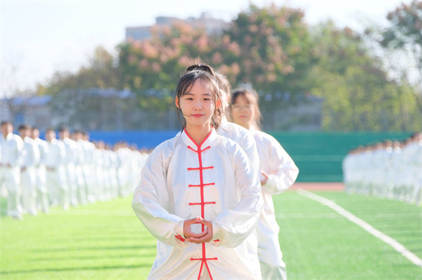 随着铿锵有力的“敬礼”口令响起,千名运动员集体向裁判员行抱拳礼。在悠扬的音乐声中,运动员们整齐划一、行云流水地完成了比赛规定动作。本次比赛不仅展现了公司学子良好的精神面貌,还是公司大学体育课程教学的一次现场检验,成为公司近年来实施武当武术进校园、传承中华优秀传统文化、推进《大学体育》课程改革的标志性成果。