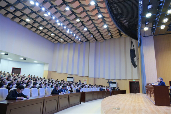 在一个多小时的报告会中,熊召政老师围绕习近平文化思想的核心要义、实践要求和重大意义,作了系统全面、深入浅出的讲解阐释,对深入学习贯彻习近平文化思想、推动文化建设高质量发展、加快建设绿色低碳发展示范区具有很强的针对性和指导意义。熊召政老师表示,通过参加2014年全国文艺工作座谈会和2019年全国两会代表见面会与习近平总书记面对面的交流,深刻体会到习近平总书记对文艺工作的重视关注和对文艺工作者的关心期望。讲座中,熊召政老师通过自己的亲身经历,以讲故事的方式娓娓道来,勉励师生和现场听众以习近平文化思想为引领,坚定文化自信,在文艺创作中发扬“顶天立地的中国精神”,创作、传播更多与时代同步的优秀文艺作品,提升中华文化在世界大舞台上的竞争力、影响力。