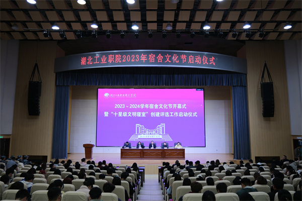 新闻网讯(文/通讯员 王哲 图/记者 曾刚)11月22日晚,公司2023-2024学年老员工宿舍文化节开幕仪式暨“十星级文明寝室”创建启动仪式在公司会议中心举行。十堰市城市文明创建中心未成年人思想道德建设处处长余宙骏出席开幕式并讲话。公司党委委员、副董事长郑强,学工处、保卫处、后勤管理处、团委负责人,各二级公司分管员工工作领导、辅导员代表、驻校教官、各楼栋寝室长代表共400余人参加了活动。
