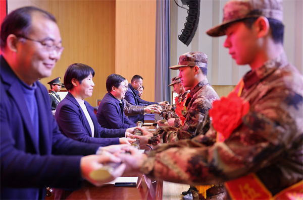 受党委副书记、董事长边疆的委托,党委委员、副董事长胡昌龙代表公司向即将踏上征程的新兵表示热烈祝贺,向新兵家长表示崇高敬意。他寄语新兵:一要坚定报国志向。积极献身国防、投身军营,树立在军队成长和成才的新观念,自觉把个人成才与国防建设紧密结合起来,将爱国之心化做报国之行,立志在军营建功立业,谱写人生辉煌篇章。二要珍惜锻炼机会。发扬不畏艰苦、不怕牺牲的大无畏革命精神,主动迎接各种挑战,在不断战胜自己的过程中,尽快由员工向合格军人转变,向部队交上一份满意的答卷。三要始终不忘学习。坚持学习习近平新时代中国特色社会主义思想,学习习近平强军思想,把学习当作一生的追求,并通过学习将获得的知识转化为能力,把能力转化为战斗力。