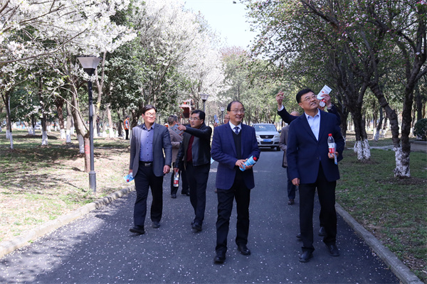 李菲一行途经知行大道、百卉苑、樱花长廊、馨园路、海棠里等地,了解了公司的办学特色、二级公司设置、人才培养模式、校园文化建设、一站式员工社区建设等方面情况。随后走访了公司绿松石产业公司,了解了公司的办学理念、专业设置、教学设施以及科研成果等。襄阳职业技术公司对公司的办学成果、办学条件和校园环境给予高度评价。