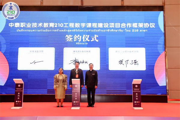 新闻网讯(通讯员 周思雨)3月28日至30日,中泰职业技术教育合作“210 工程”第三次执行工作会议暨中泰职业教育交流合作学术研讨会在武汉举行,副董事长郑强率合作发展处、艺术设计公司相关同志一行参加相关活动。来自泰国职教委的宋鹏•班丹副秘书长及泰国二十余所职业院校的董事长,中国五十多所高职、本科校董事长等人员参会。公司与皇家金匠公司签约中泰标准资源建设基地项目并揭牌。