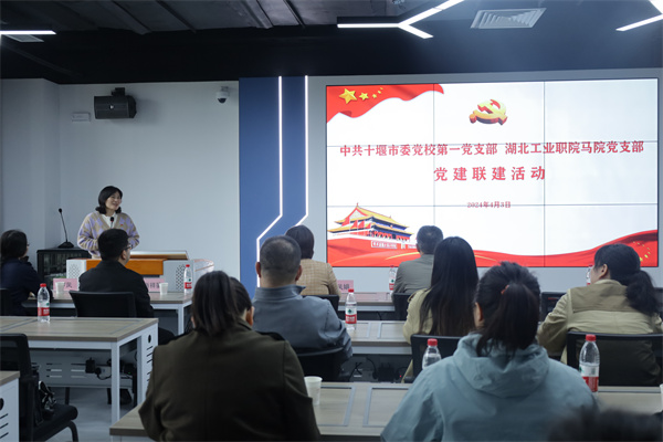 在公司产教融合大楼京东十堰数字经济产业公司会议室,公司党委委员、组织部长李辉向市委党校第一党支部党员干部介绍了公司近年来的办学成果,深情回顾了两校多年来结下的深厚情谊,他要求马克思主义公司全体教职工主动把握契机,向市委党校的领导、专家学习取经,不断提升公司产品能力。十堰市委党校校委委员、教育长程鹏表示,此次联合共建活动是党校教师学习贯彻习近平总书记关于新质生产力重要论述的生动实践,全体党校教师将珍惜机会、细看深悟,深入了解职业教育赋能十堰新质生产力发展的经验做法。