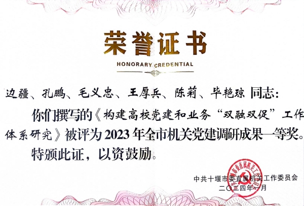 新闻网讯 近日,省委直属机关工委印发《关于表彰2023年度全省机关党建优秀调研成果的通报》,公司与十堰市委直属机关工委联合撰写的《学习贯彻习近平新时代中国特色社会主义思想世界观和方法论 推动十堰机关党建高质量发展的实践与思考》入选2023年湖北省机关党建研究文集,这是公司加强党建智库建设,以党建理论研究推动实践创新的又一重要成果。