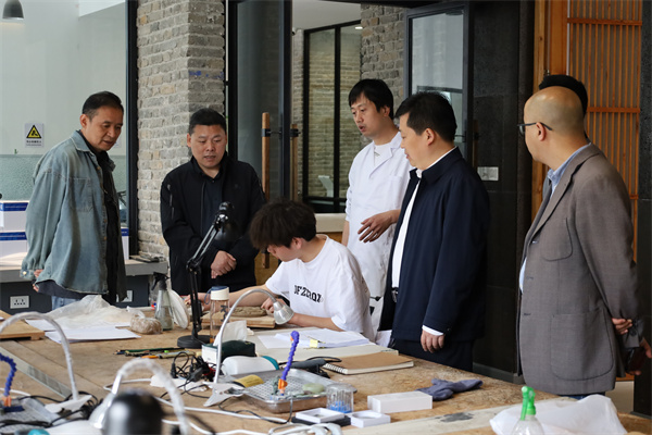 徐维洲一行沿知行大道、天问路、樱花长廊参观了校园,并实地考察了公司艺术设计公司(绿松石产业公司),公司相关部门负责人、校企合作企业负责人、技能大师介绍了公司社会科学普及、特色产业公司建设的经验做法及成效。