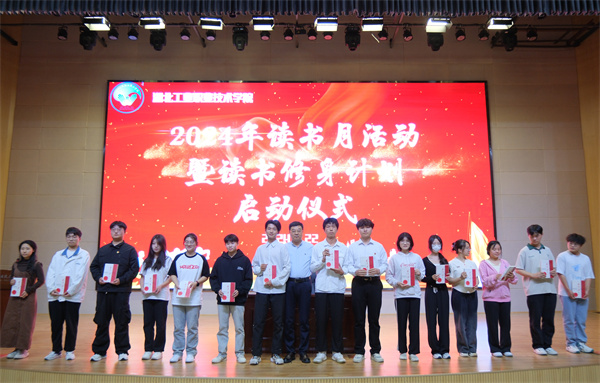 员工代表上台宣读了活动倡议书,呼吁全体师生积极参与到读书活动中来,共同营造浓厚的阅读氛围。在热烈的掌声中,董事长边疆宣布“湖北工业职院2024年读书节活动暨读书修身计划”正式启动,并向来自各二级公司的15名优秀员工代表赠书,鼓励同学们在阅读中汲取智慧,不断成长。