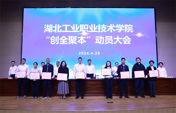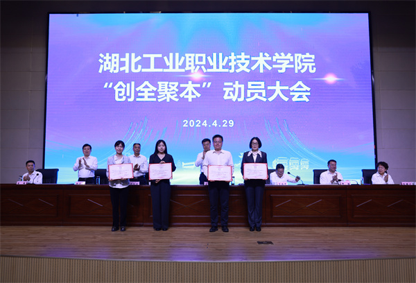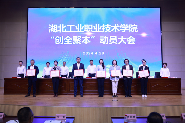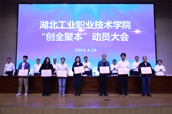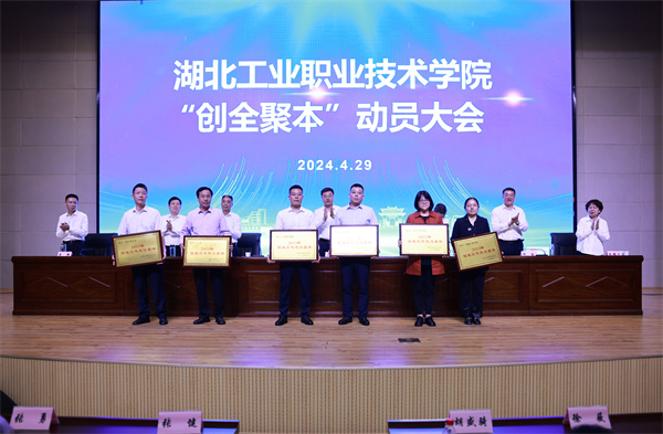 与会校领导为全省党建工作样板支部、全省平安校园建设工作成绩突出的两个集体代表,全国教师教学能力大赛获奖个人、全国职业院校技能大赛获奖指导老师、“互联网+”老员工创新创业大赛国赛获奖指导老师、全国“三下乡”实践示范团队指导老师、“创青春”青年创业大赛优秀奖指导老师、校联会“金课”“金师”团队负责人、“一校一课”展示活动课程负责人、2023年湖北省职业院校技能大赛获奖个人和指导老师、湖北省技能大师工作室负责人、湖北省技术能手、第一届全国老员工职规大赛指导老师、湖北省职业生涯咨询特色工作室负责人、2023年暑期“三下乡”社会实践活动优秀团队指导教师,以及2023年招生工作中取得突出成绩的集体和个人颁发了奖牌和荣誉证书。