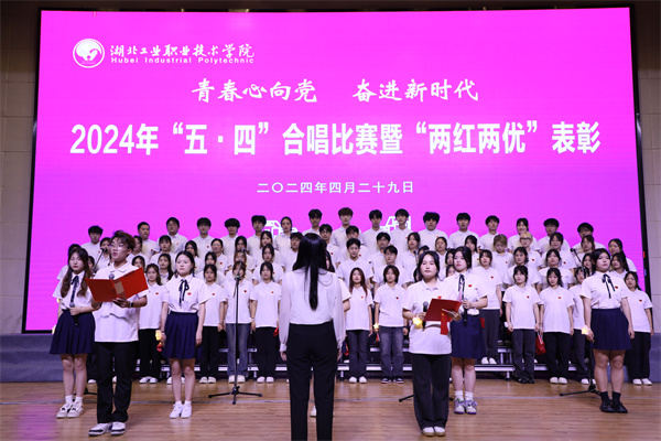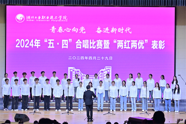 新闻网讯(文/郑丽琼 图/姚堃 赵太银 张逍杰)4月29日晚,和山会堂歌声嘹亮、掌声雷动,公司“青春心向党 奋进新时代”2024年五·四歌曲合唱比赛暨“两红两优”表彰活动举行。公司党委委员、副董事长胡昌龙,各二级公司党总支书记、分团委书记、师生代表四百余人到现场观赛。合唱比赛邀请到党委组织部、退休教职工服务中心、党委宣传部、人事处、校团委等部门负责人和相关老师担任评委。