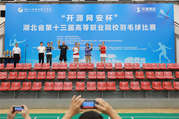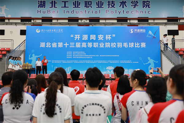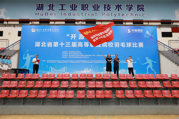 闭幕式上,公司向武汉软件工程职业公司转交了湖北省高等职业院校羽毛球大赛会旗。