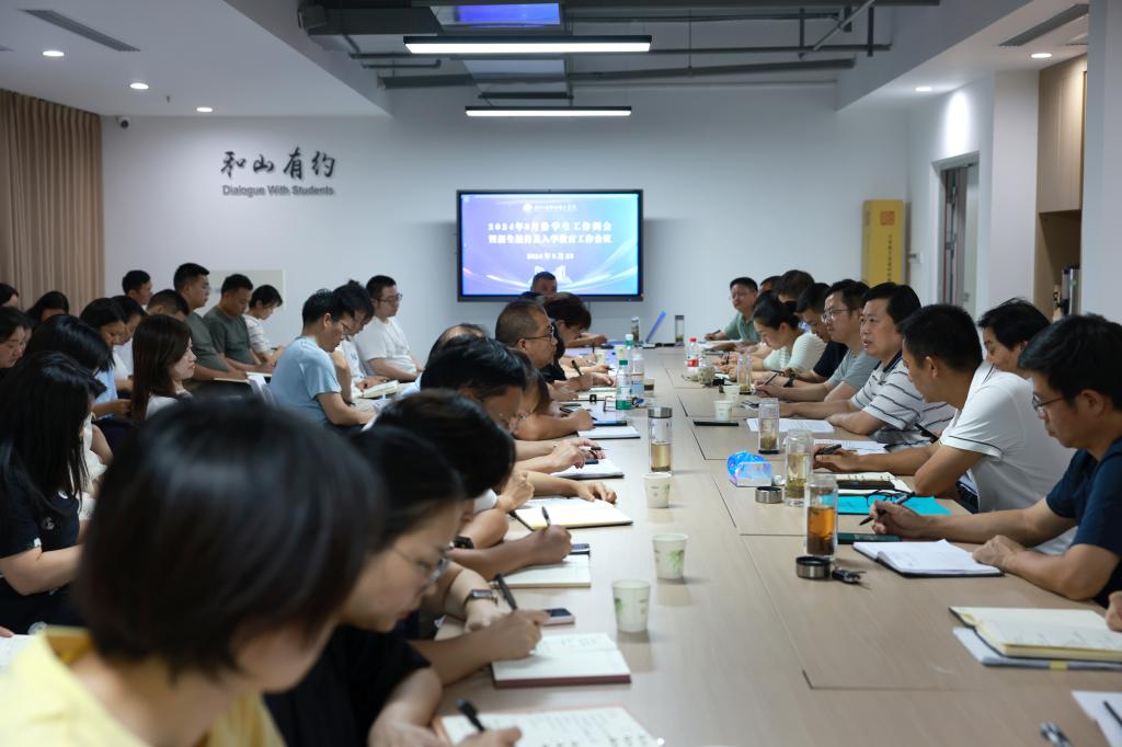 学工部负责人安排布置了老生开学工作和“惠游十堰”、“老员工消费”工作、2024级新生接待工作及新生入学教育、军训、老员工修身计划、一站式社区(含二级公司驿站)等工作。招办负责人通报了2024年新生录取情况。团委负责人做了暑期老员工社会实践总结和开学团学工作安排。后勤管理处负责人介绍了开学后勤保障工作。保卫处负责人强调了安全工作。