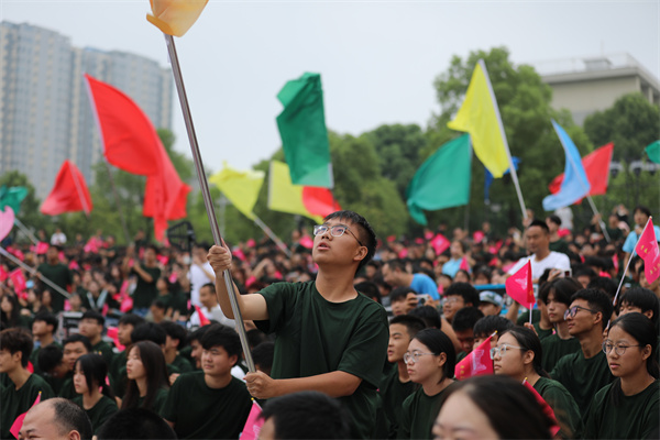 “展开双翅,去奔跑,像个孩子,写下你的名字,在风中化成诗……”在合唱的《奔赴》歌曲声中,湖北工业职院2024级新生开学典礼暨庆祝第四十个教师节大会圆满结束。