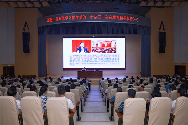 公司党委副书记肖海华在主持报告会时表示,郑昕同志的报告紧密结合当前形势,资料丰富、贴近实际,提炼精准、站位很高,对我们深入学习领会全会精神,进一步全面深化办学治校综合改革、推进治理体系和治理能力现代化,奋力推进公司事业高质量发展、奋力实现“创全聚本”战略目标具有重要的指导意义。对于学习贯彻党的二十届三中全会精神,肖海华要求:一是切实加强组织领导。当前和今后一个时期,全校上下要把学习宣传贯彻党的二十届三中全会精神作为一项重要政治任务,按照党中央统一部署和省委市委要求,精心组织、周密安排、扎实做好全会精神的学习宣传贯彻工作。把学习领会二十届三中全会精神与深化巩固学习贯彻习近平新时代中国特色社会主义思想主题教育成果、与党纪学习教育结合起来,创新学习方式载体,提升学习宣传效果。二是扎实抓好学习宣传工作的落实。全校上下要按照公司党委近期印发的《学习宣传党的二十届三中全会精神工作方案》,认真组织开展二十届三中全会精神的学习宣传工作,要结合校院两级中心组、重要会议、支部主题党日、书记讲党课、主题团日、主题班会等各类渠道,做到“领导班子带头学带头讲、中层干部跟进学跟进讲、广大党员集中学集中讲、班团组织全面学全面讲”,扎实做好面向全校不同公司、专业、年级、班级师生的宣讲工作。要坚持正确导向,创新宣讲形式,讲究宣讲艺术,灵活运用广大师生喜闻乐见的方式和语言,准确生动讲好二十届三中全会精神。三是务实推动事业发展。全校上下要把学习贯彻落实二十届三中全会精神与做好当前各项工作紧密结合起来,立足岗位工作,全面系统深入推进办学体制机制综合改革,不断优化完善公司内部治理体系,努力推进治理体系和治理能力现代化。要把学习宣传贯彻全会精神转化为推动公司事业高质量、大踏步发展的强大动力,提振精气神、敢啃硬骨头,扎实做好“双高”验收、“创全聚本”等各项工作,确保公司内涵建设取得更大成绩、“创全聚本”取得更多突破。